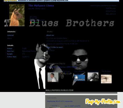 | Blues brothers Friendster Layouts | <<Prev Next>>  | Designer: smayo2 Tools · Preview · Customize · Bookmark Current Rating: