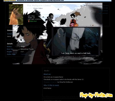 Pimp-My-Profile.com is in no way endorsed by or affiliated with myspace, hi5, blogger, friendster, twitter or any other site.